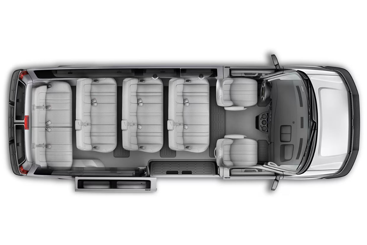 The spacious Express Passenger Van is designed with multiple seating configurations that allow you to comfortably fit your group and still have room for luggage or additional cargo.