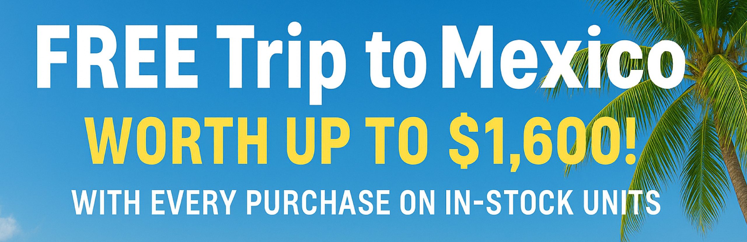 Purchase any new in-stock unit and get a FREE trip to Mexico worth up to $1,600!
